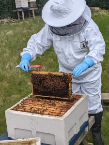 Her main role is laying eggs, lots and lots of eggs, up to 1500 a day to keep her colony strong. As the queen you might think she has all the power, but actually she doesn’t have that much power. Her hive is a democratic system influenced by the worker bees. They will decide when Cleo needs replacing, and they will do it. She does, however, set the tone and temperament of her hive through her pheromones. These also let her colony know how healthy she is. When the pheromone levels fall it can be the signal that a new queen is needed.